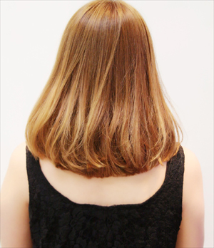 鎖骨くらいの少し長めのボブ。