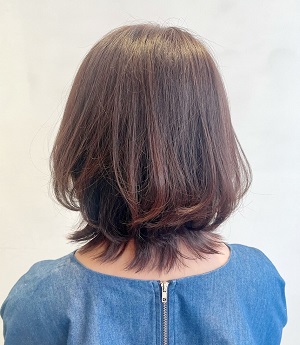 肩にかかるくらいの外ハネスタイル。
